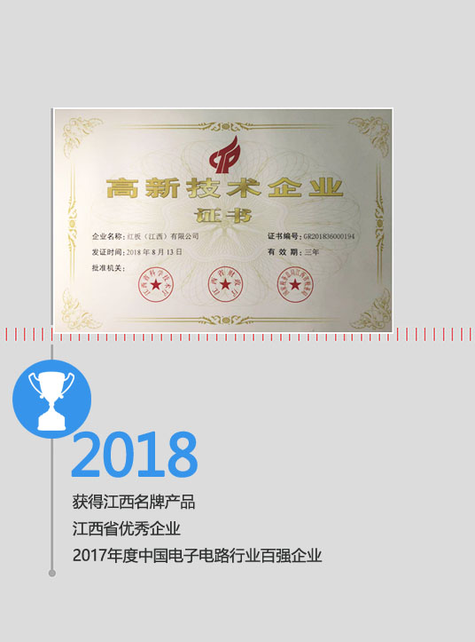 江西紅板科技股份有限公司成立于2005年,注冊地點在江西省吉安市井岡山經濟技術開發(fā)區(qū)京九大道281號,是一家集印制電路板研發(fā)、生產、銷售于一體的國家高新技術企業(yè)。公司主營業(yè)務:生產銷售印制電路板(又稱線路板、PCB)。公司已形成完善的產品結構,產品包括HDI板、剛性板、柔性板、剛柔結合板、類載板、IC載板等,并具備全面的技術研發(fā)和生產能力,可為客戶提供多樣化的產品選擇和一站式服務。